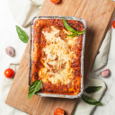Láminas de masa intercaladas con salsa bolognesa, salsa bechamel y queso parmesano en versión de 1 Kilo